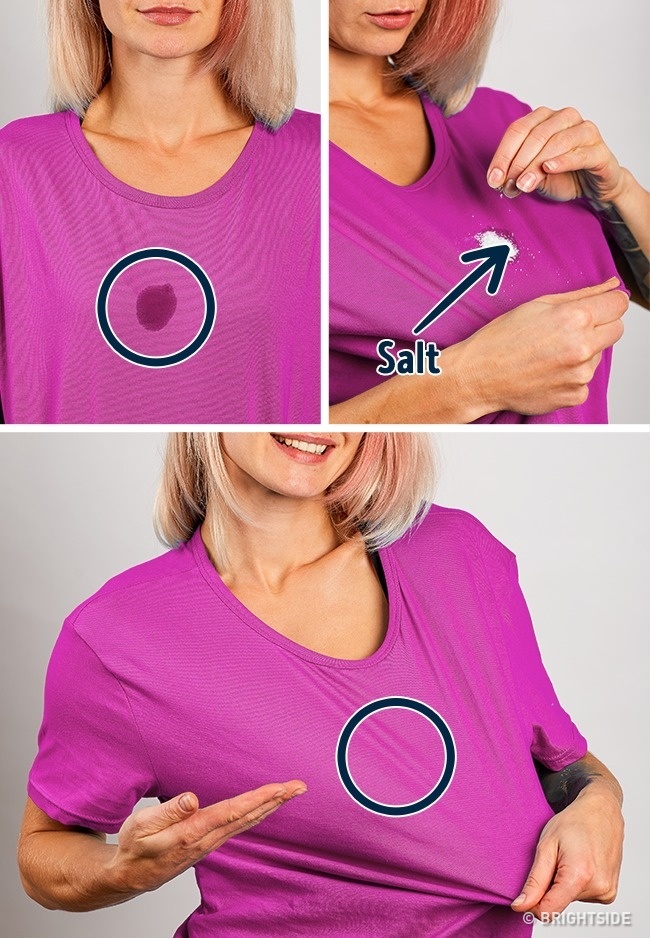 ▼食鹽去除油漬:鹽能夠吸油,衣服上沾染油漬的話,灑上一點鹽,等一會兒再清理掉,大片油漬洗起來更簡單,小片油漬的話直接就消失了。