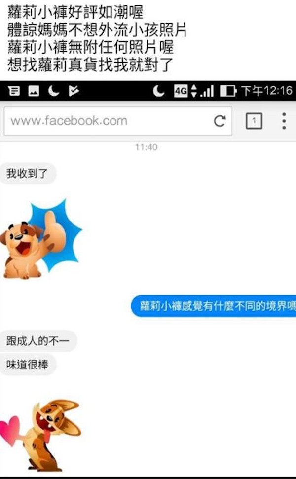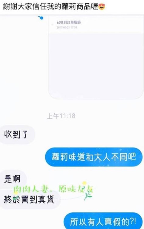 ▼三寶媽更留言說:「謝謝大家信任我的蘿莉商品喔」、「蘿莉味道和大人不同吧!」