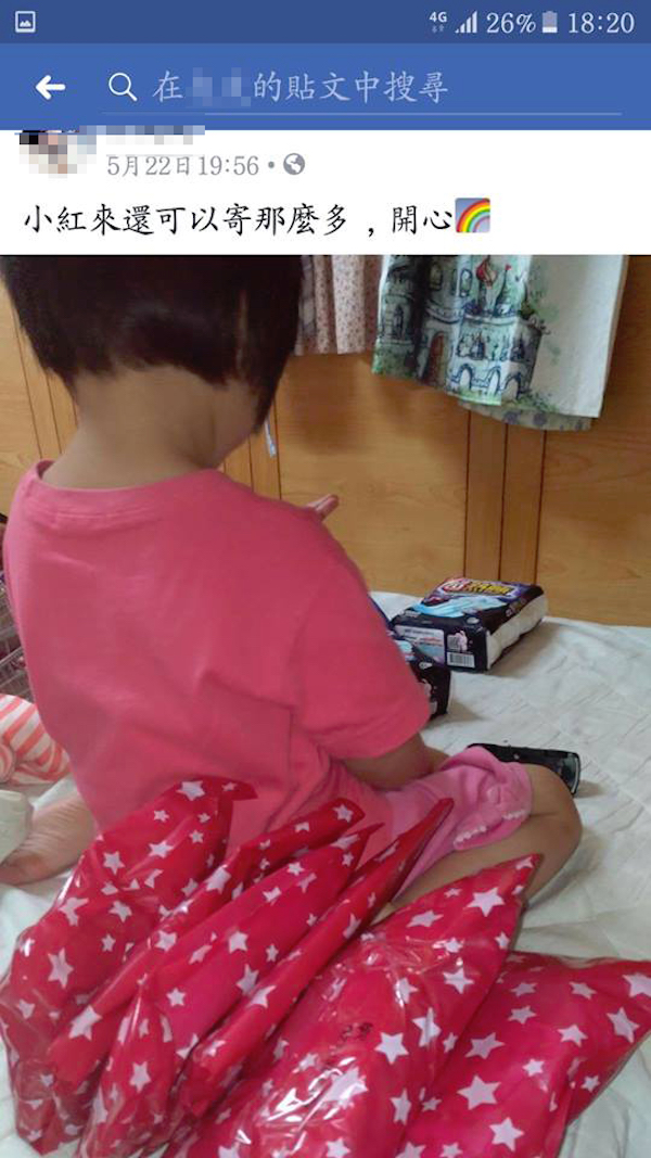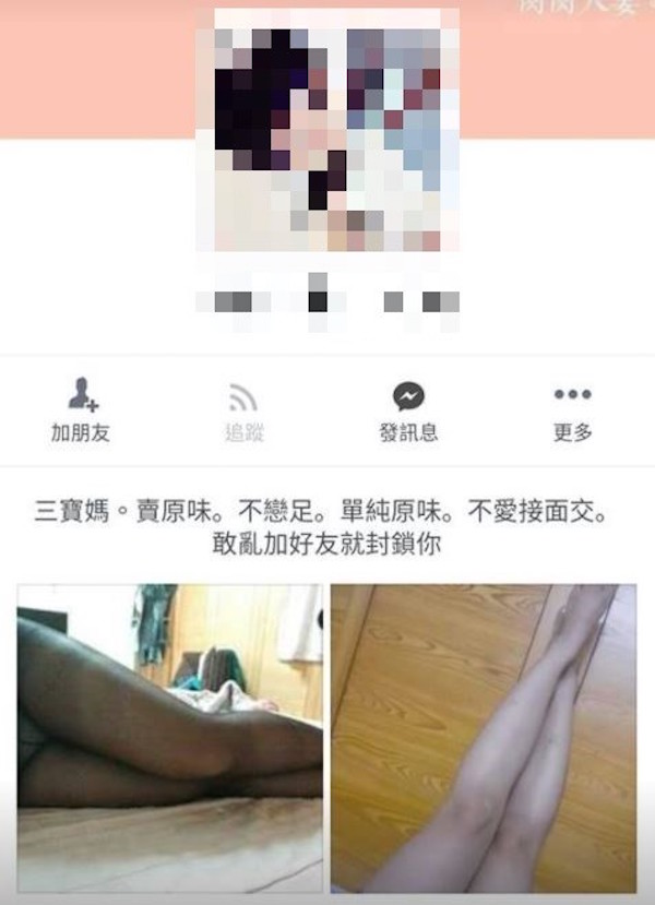 ▼這位「三寶媽」自稱是三個小孩的媽,除了販賣自身穿過的貼身衣物外,平時也在網路兜售8歲女兒的原味內褲,偶爾還會自己沾到經血的貼身衣物,讓人瞠目結舌。