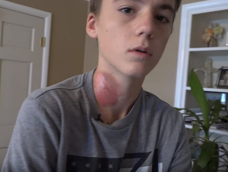 ▼那天他在一名朋友家中留宿,半夜睡著後,朋友們直接把滾燙的熱水澆到了他的身上。他表示:「我當時感覺脖子非常燙,於是驚醒過來,忍不住尖叫哭喊。」後來他去浴室照鏡子,這才發現自己的脖子被嚴重燙傷。