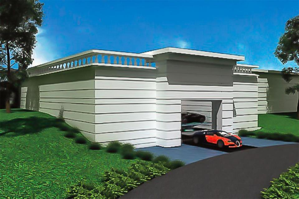 ▼屋主可以透過隱密通道中的玻璃地板與樓梯上去瞭望台,車庫則可以容納30輛跑車。