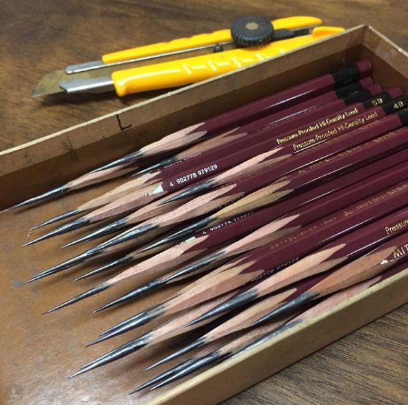 ▼至於為什麼只用鉛筆作畫,大森浩平有自己的解釋。他認為使用其他有顏色的繪圖工具,確實能讓作品更豐富,但使用最平常的鉛筆,更容易把畫的內容傳遞給大家,而且更能集中精力畫細節的部分。