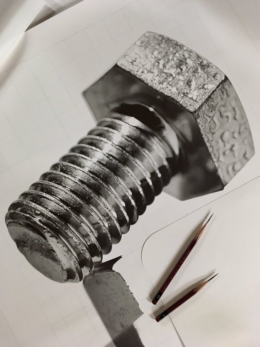 ▼原來這張圖是原PO23歲的弟弟用鉛筆畫的。4年前,弟弟大森浩平大學畢業,他沒有找工作上班,反而迷上了繪畫,最後自學成才,畫出了一手栩栩如生的3D鉛筆畫。這幅「螺絲釘」他畫了240個小時,還沒有畫完。