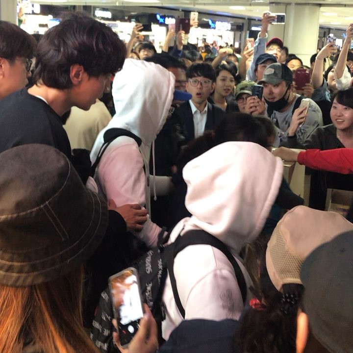 ▼原來當日他們錄影結束,準備飛回首爾時因為來圍觀的民眾太多,造成整個機場近乎癱瘓,雖然有保鏢圍繞在他們的身旁,可是他們也依舊難以行動。這時候劉在錫發現了一位抱著小孩的媽媽因為人太多而受困在人潮之中,動彈不得。