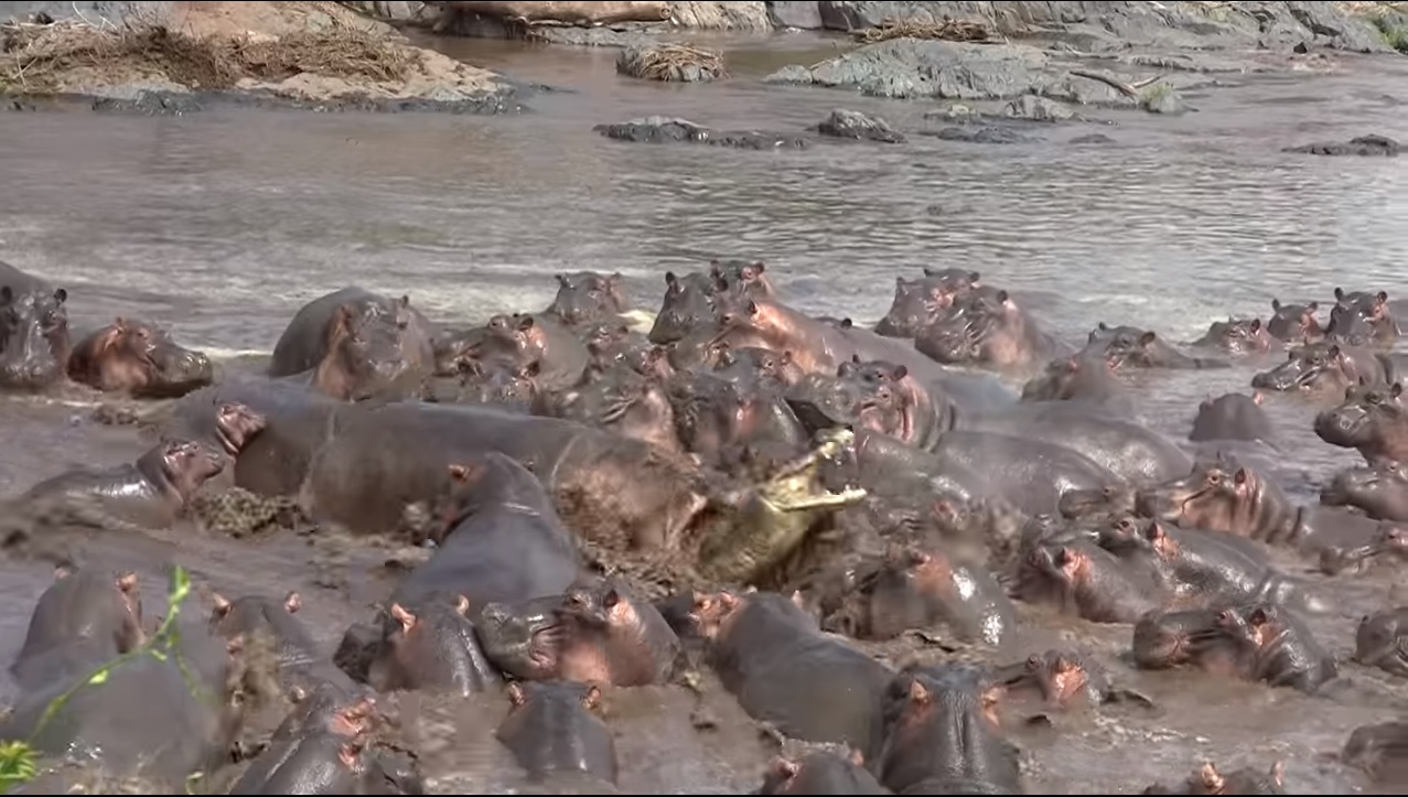 河馬可是陸地上最兇狠的動物之一,這隻鱷魚敢在牠們的眼皮底下打起小河馬的主意,實在太天真了!
