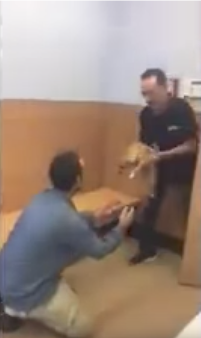 ▼工作人員不忍心見他與愛犬分離,給他提供了交通費,還陪他去了那間庇護所。這一次他沒有失望,Tita就在這裡。狗狗被抱出來的一刻,街友非常開心,Tita也認出了主人,迫不及待想要撲過去,兩人的親密互動非常感人。