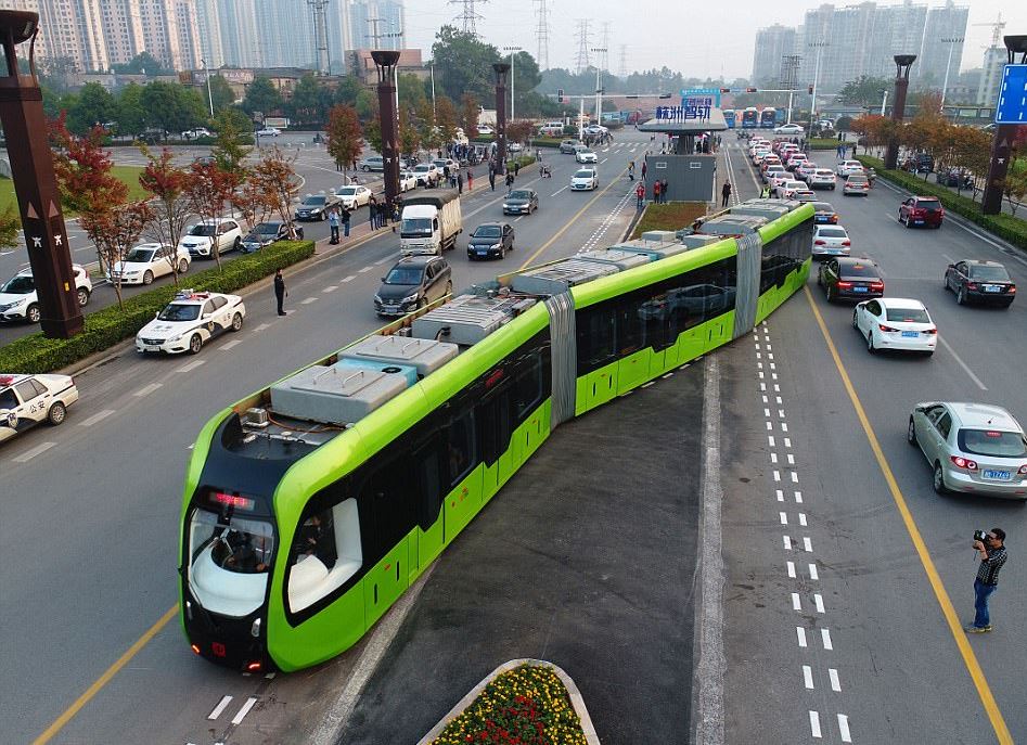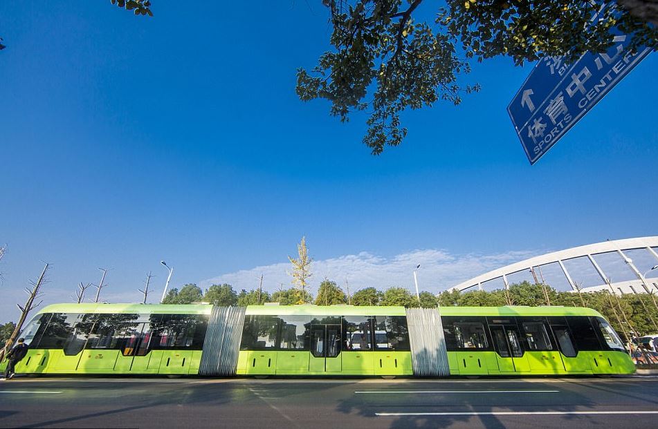 領先全球!中國又搶第一「無軌道電車」正式上路,列車可以直接在馬路上趴趴走!