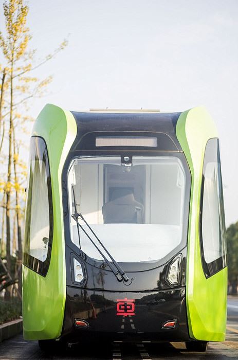 ▼無軌列車在中國湖南省株州正式運行,靠的是虛擬軌道來引導列車前進。