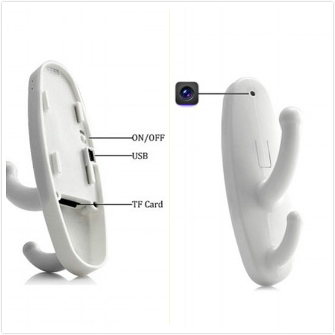 ▼有人將這種掛鉤安裝在更衣室、飯店房間、公共洗手間裡,偷拍別人的隱私畫面。一眼看去,這種掛鉤和普通掛鉤沒什麼區別,近距離觀察的話就會發現掛鉤上面有一個小孔,這就是針孔攝像頭。