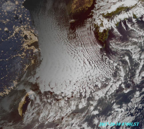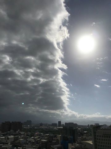 2017年11月01日前幾天,一名網友在臉書粉絲團「台灣颱風論壇」上分享了桃園上空出現的奇景,並說:「陰陽交界~這刀工不錯!桃園的朋友可以抬頭看看,新竹、苗栗也能碰碰運氣。」