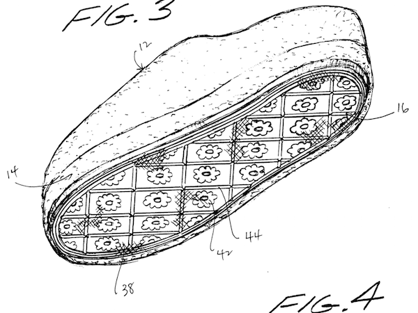 ▼部落客Jeff Steck撰文透露,他曾發現自己Converse的鞋底印有一串專利號碼,讓他好奇去查詢,發現該專利(6,430,844)是有關於家用布織拖鞋的塑膠底部,跟運動鞋的橡膠底乍看根本八竿子打不著!