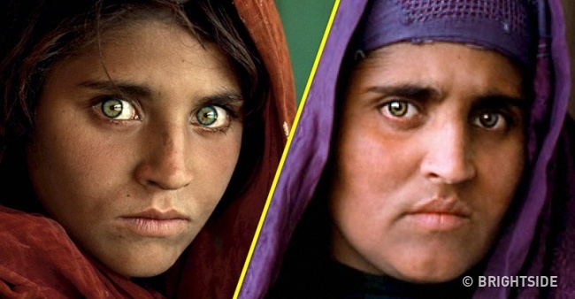 ▼夏帕特·古拉:1985年,12歲的她登上了國家地理雜誌封面,攝影師史蒂夫·麥凱瑞在難民營看到了她,並拍下了她的照片,她曾被稱為「阿富汗的蒙娜麗莎」。現在17年已經過去,史蒂夫又找到她,她現在的照片也登上了國家地理雜誌。