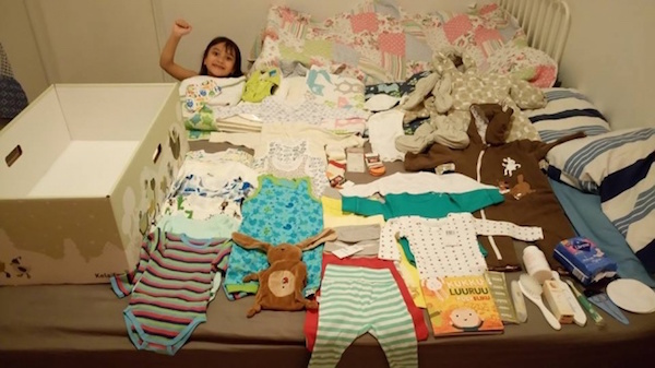 ▼2. 媽媽生下小孩後,會收到政府送的禮物箱,裡頭包含了所有育兒用品。