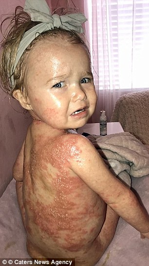 ▼莎莉在4個月大時就罹患乾癬,也是世界上年紀最小的乾癬患者之一。在治療前,艾希莉每天幫她洗澡都得花上2小時,不過漢娜寄給了他們自己的書後,現在莎莉狀況已經大幅改善,洗澡時間也縮短到20分鐘。