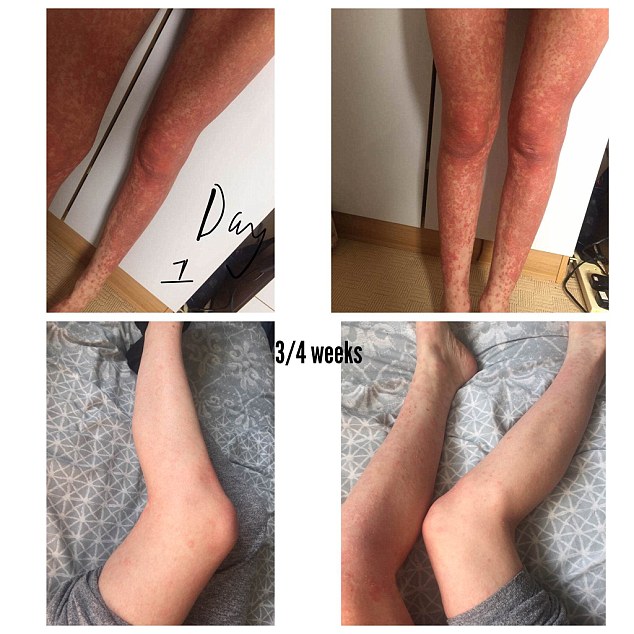 ▼漢娜在部落格上分享了她的皮膚在飲食治療前後的照片,她說在自己拒絕攝取咖啡因、酒精、糖、乳製品和小麥後,皮膚上的乾癬就幾乎都消失了!更驚人的是,她還因此瘦下31公斤,身體健康也有了顯著的提升。