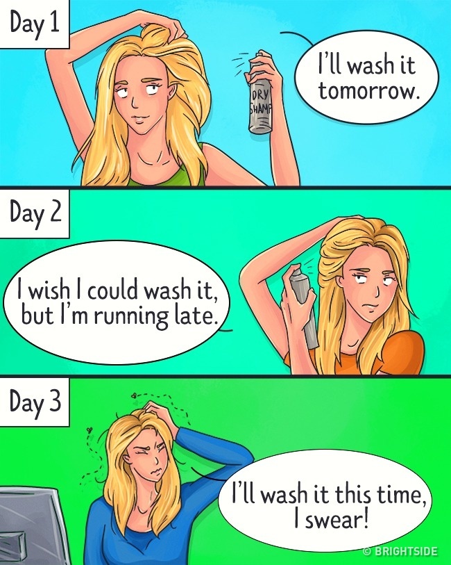 第三天:「這次我一定會洗頭髮,我發誓!」