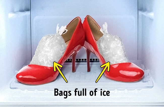 ▼冰凍鞋子更合腳:如果鞋子有點擠腳,可以在密封袋中裝滿水,然後放在鞋子裡,並將鞋子放到冰箱中冷凍。等到水完全結冰,將鞋子拿出來試穿一下,如果還是太小,就再灌水冷凍。