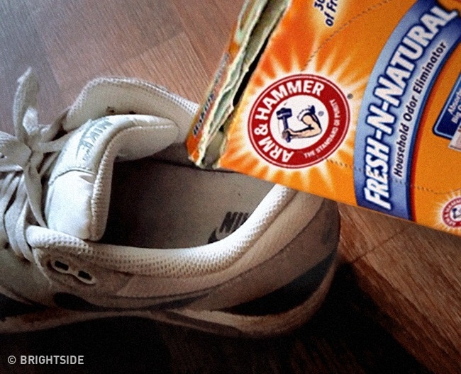 ▼將小蘇打倒進運動鞋裡:運動鞋的味道很難聞,將一包小蘇打放進鞋子裡,或者在鞋子裡灑一點小蘇打,第二天早上味道就不見了。不要直接把小蘇打灑在皮革或者絨面革上,這會讓它們變得很脆弱。