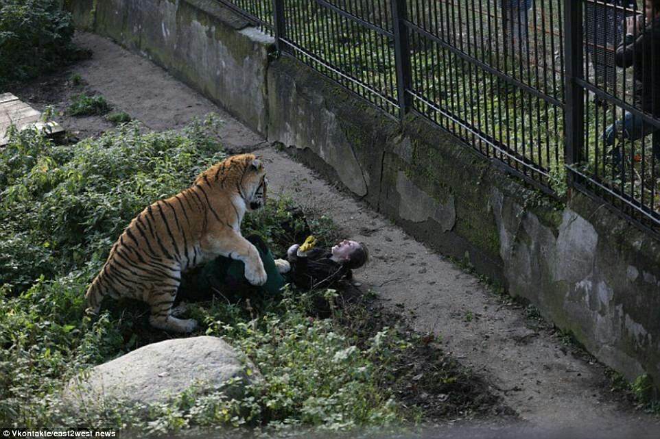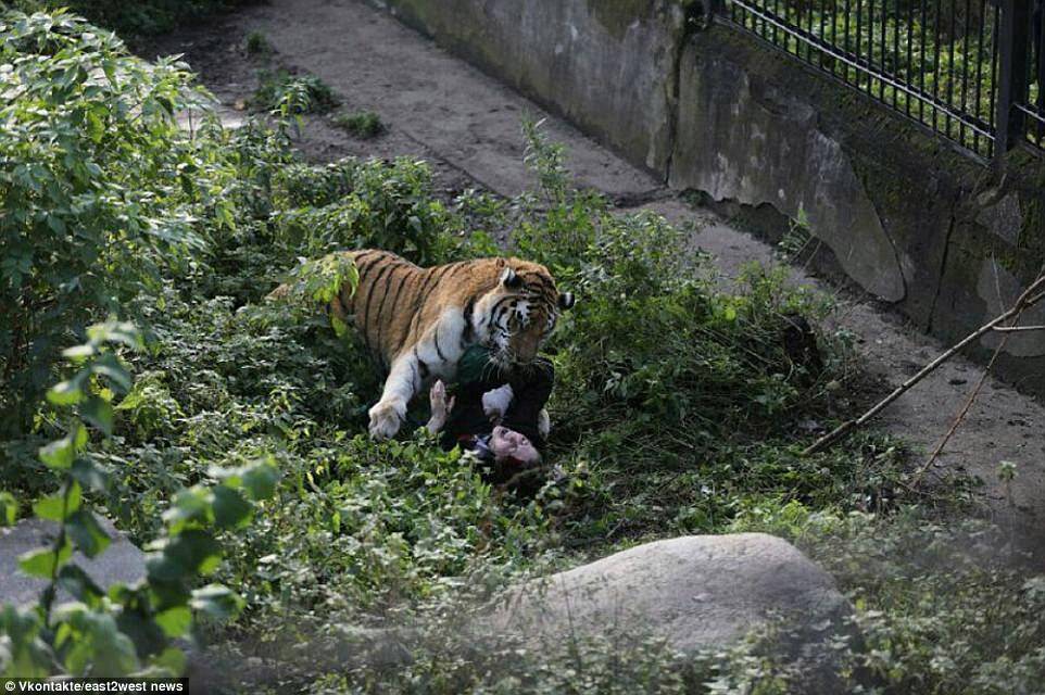 2017年11月06日前幾天,俄羅斯加里寧格勒動物園(Kaliningrad Zoo)發生了一起可怕的意外事故。一名女飼養員給一隻叫Typhoon的雄性西伯利亞虎餵食時,籠子意外打開,老虎直接撲出來開始攻擊她。