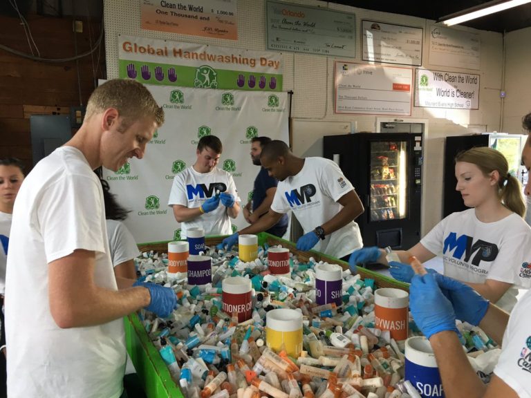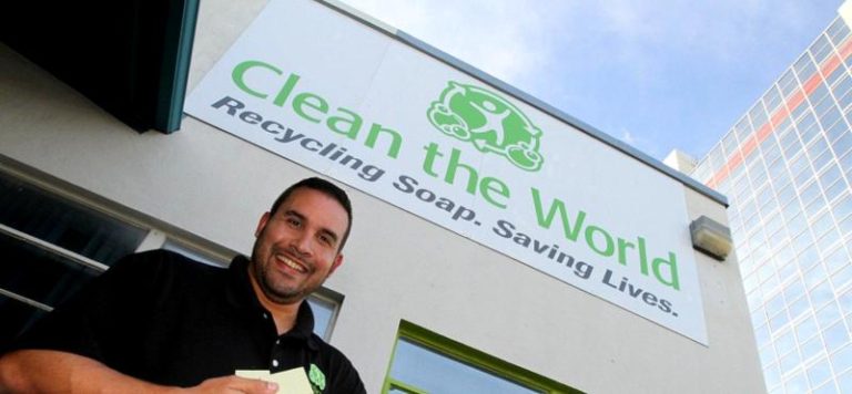 ▼回收組織「潔淨世界」(Clean The World)的創辦人塞普勒(Cue Shawn Seipler)原本從事科技業,在一次的出差住飯店時得知每次只被使用過幾次的肥皂都會被丟掉,覺得非常浪費。於是他在2009年放棄了原本科技業的高薪厚職,開始他在佛羅里達州飯店肥皂回收的另一段工作生涯。