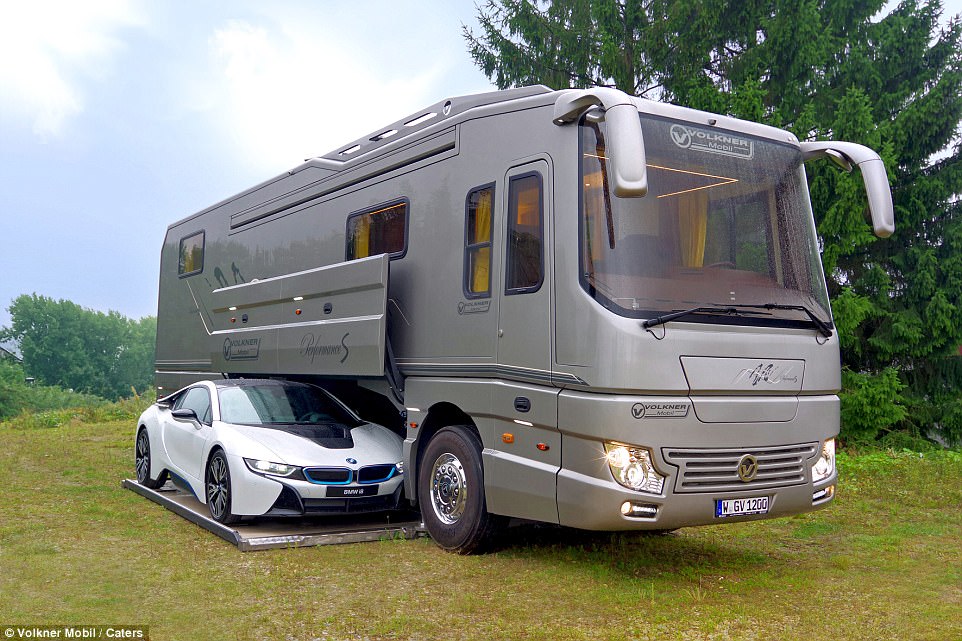 ▼這台露營車長12公尺,內部有廚房、臥室、廁所,還有超棒的內置車庫。