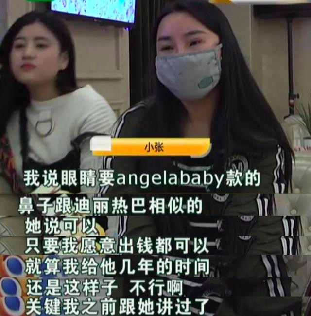 ▼今年10月,大陸一名20歲的張姓女孩到診所做隆鼻、開眼角手術。她表示「眼睛要像Angelababy,鼻子要像迪麗熱巴」。手術之前,診所滿口答應,保證說:「只要出錢都可以做到!」