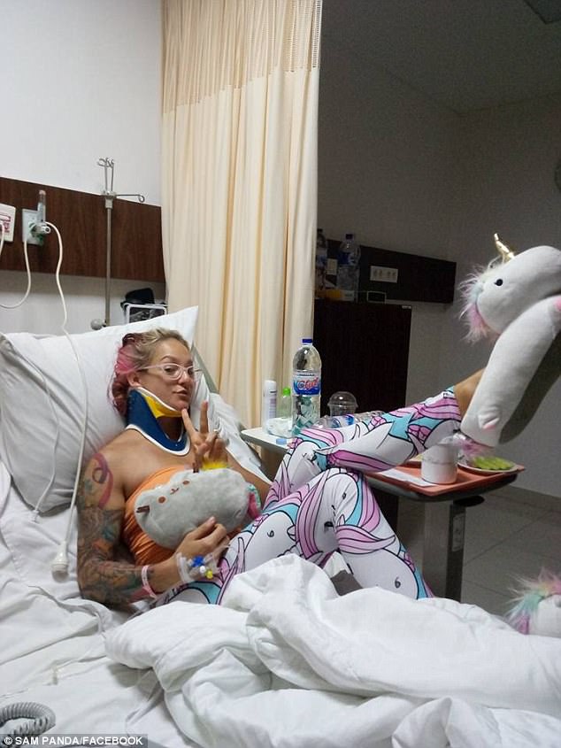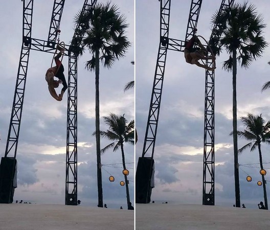 美國賓夕法尼亞州26歲女子Sam Panda是一名空中特技員。最近,她跟隨雜技團進行世界巡迴演出,10月底時到印尼巴里島表演「吊掛鋼環」。「吊掛鋼環」很驚險,但Sam已經表演多次,按理來說不會有什麼問題,沒想到表演過程中設備出現故障,她直接從4公尺高空摔了下來。