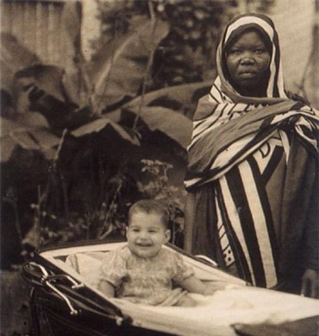 ▼2. 1947年的尚吉巴,一位年輕的保姆帶著指責的眼神,站在開懷大笑的嬰兒法魯克(Farrokh Bulsara)旁邊。四分之一個世紀後,他有了一個更響亮的名字,叫做佛萊迪墨丘瑞(Freddie Mercury),也就是皇后合唱團的主唱。