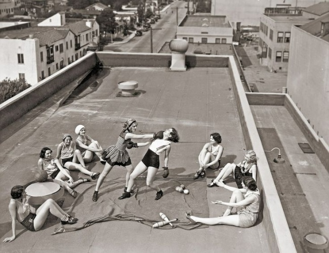 ▼25. 1930年,屋頂上的女子拳擊賽。