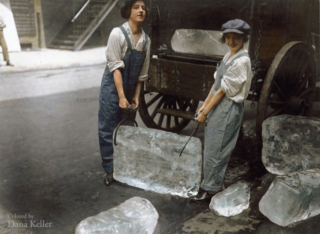 ▼17. 1918年,搬運冰磚的女性。(後期上色)