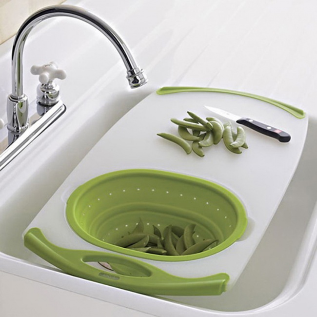 ▼瀝水砧板:直接放在水槽上,不佔空間,還能瀝水。