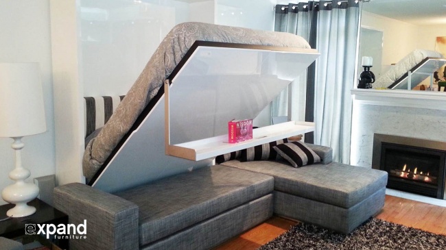 ▼壁式掀床:平時是沙發,拉下來就變成大床。