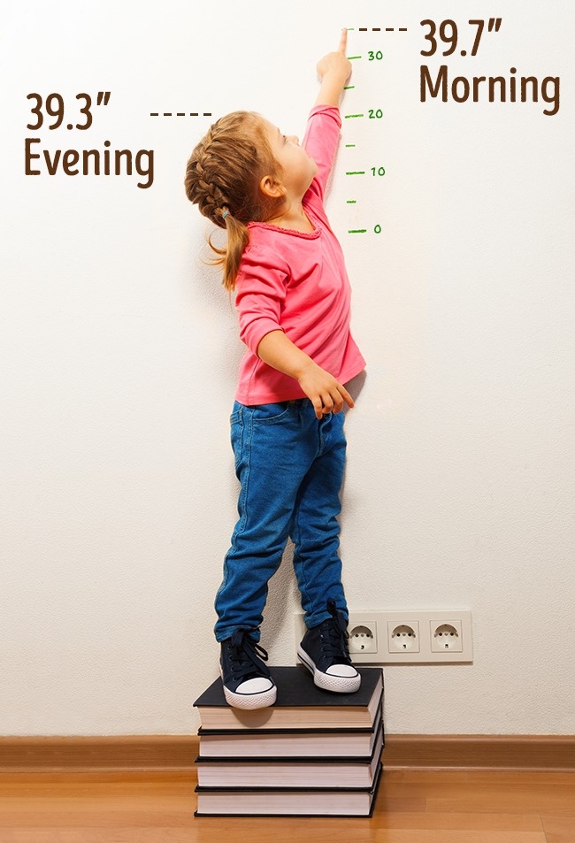 ▼在夜裡,你的椎間盤會放鬆並擴大,這就是為什麼早上會比晚上高1%。