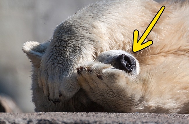 ▼北極熊為了在雪中隱藏自己,會用爪子遮住黑鼻頭。