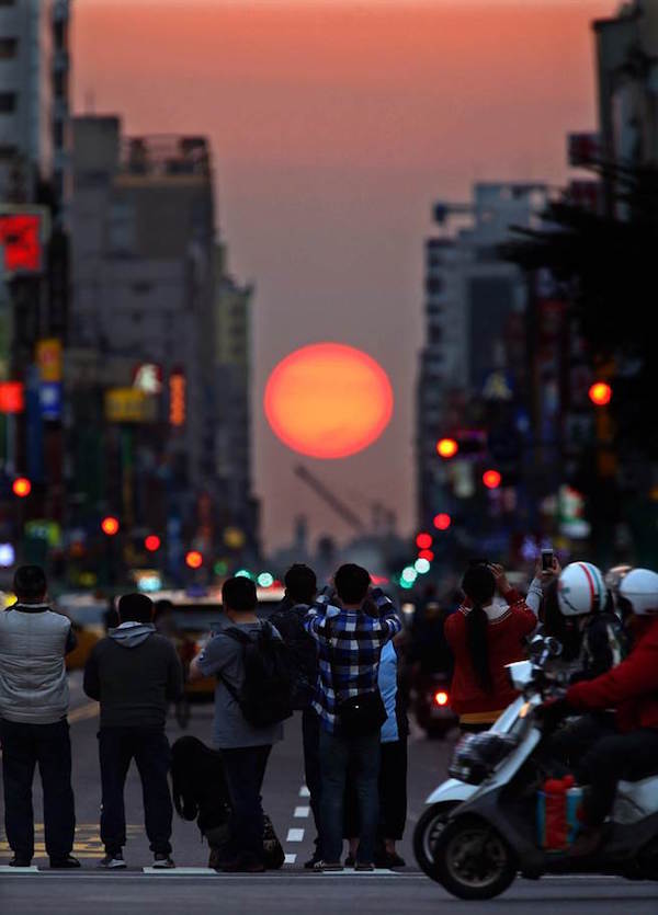 ▼曼哈頓懸日原本是紐約曼哈頓出現的一種自然現象,由於曼哈頓街道大多呈現棋盤式佈局,所以每年的特定時節,日落的陽光就會灑滿曼哈頓街道,時間長達15分鐘,後來被天體物理學家正式命名為「懸日」。