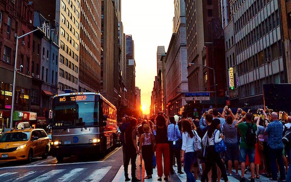 ▼每年懸日的出現期間,曼哈頓街頭也都會有滿滿的人潮,搶著跟這幅美景合照!