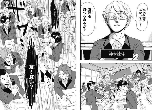 2017年11月11日前段時間,曾經創作過《支配異世界的技能掠奪者~從零開始建造奴隸後宮~》、《關於人類是最強種族這件事》等輕小說的作者「柑橘ゆすら」,與漫畫家「沢瀬ゆう」聯手推出了恐怖獵奇新作《友食い教室》。這本漫畫從一開始就很重口,被捲入了「吃朋友遊戲」的高中生們必須互相吃對方,否則就會死掉。