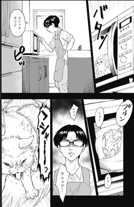 ▼「吃人」當然很恐怖,也很噁心,但這一類情節在很多作品中都出現過,網友們雖然覺得血腥了點,但沒有反對,還是津津有味看了下去。故事進展到第8話,漫畫中出現了「用微波爐殺死小貓」的情節,沒想到一下子引爆了讀者的厭惡情緒。