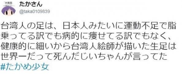 ▼之後有網友分享了日本網友在推特上的貼文,內容表示比起日本繪畫師的纖細腿,更加喜歡台灣繪畫師畫的健康美腿,甚至他去世的爺爺也曾說過這樣的話。