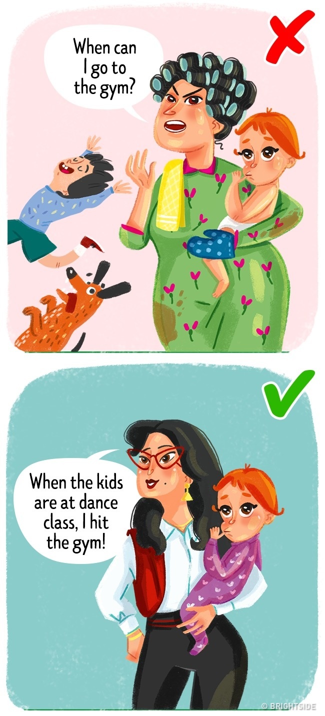 對:「孩子們去上舞蹈課的時候,我去健身房運動。」