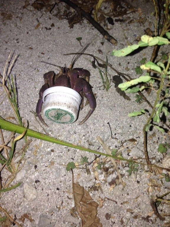 ▼這隻寄居蟹把飲料蓋當成了殼。