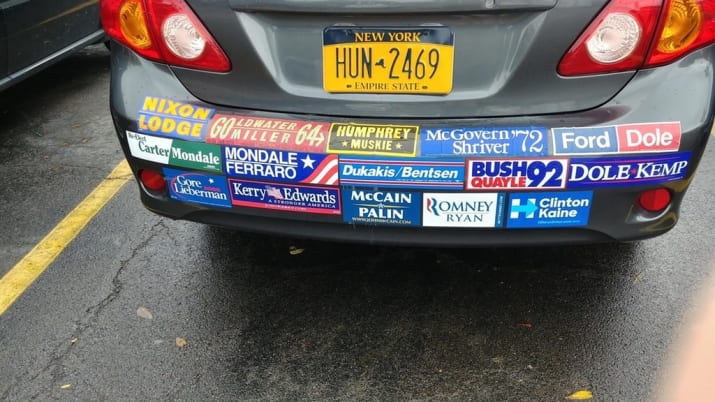 ▼車上貼滿了競選總統失敗的候選人的廣告。