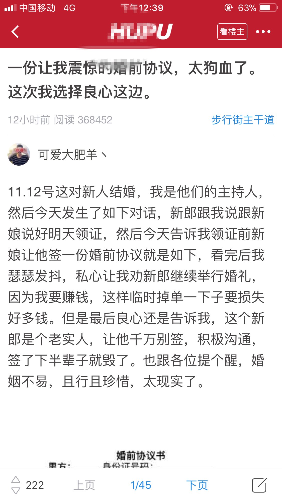 現代許多男女在結婚之前,都會簽署一份「婚前協議書」來保障自己結婚以後的利益,可是近日中國卻有一對新人原本打算在雙11的隔天就登記領結婚證,結果新郎看到新娘所擬出的一份婚前協議書之後,嚇得頭都昏了!之後他將這份協議傳給當天的婚禮主持人詢問自己該不該簽,連主持人看完之後都氣憤不已,告訴他:「簽下去下半輩子就毀了!」