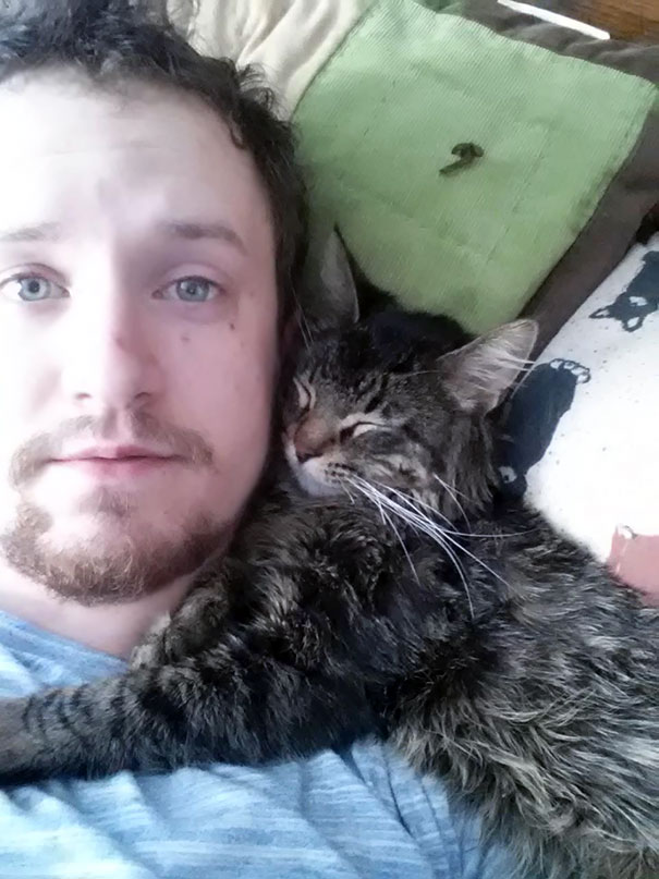 ▼1. 「昨晚我從酒吧走回家時,給了路邊這小傢伙一小塊培根,然後牠就尾隨我10個街區…這是我早上醒來的樣子。」