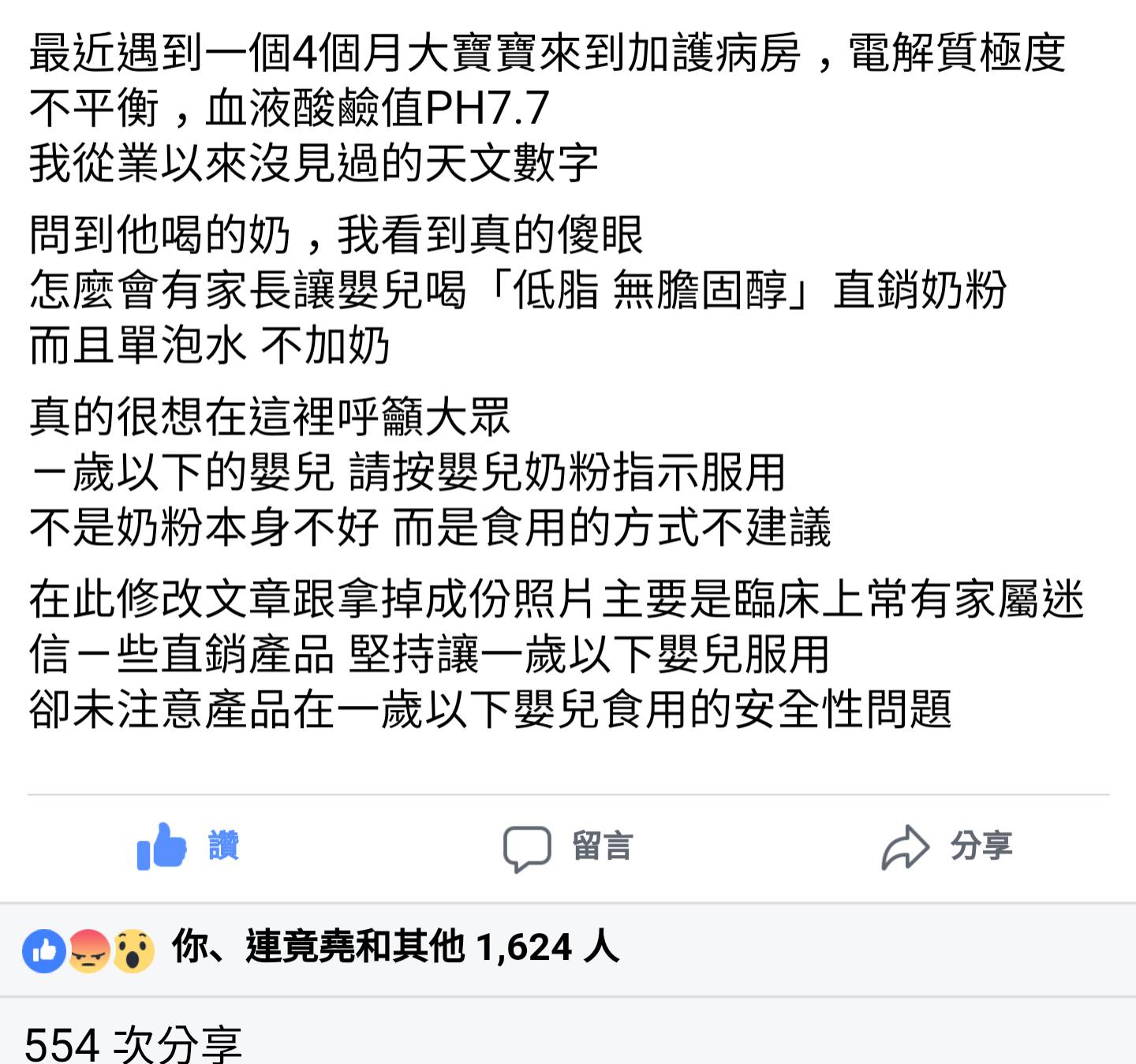 ▼醫師指出,媽媽本身是直銷奶粉的愛用者,但忽略了大人和小孩的差距,所以特別發文警告,其他醫師也紛紛轉貼。不過消息才爆出不久,直銷廠商就立刻警告:「如果不撤文就提告!」
