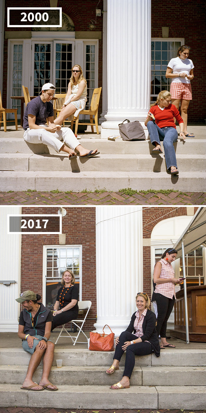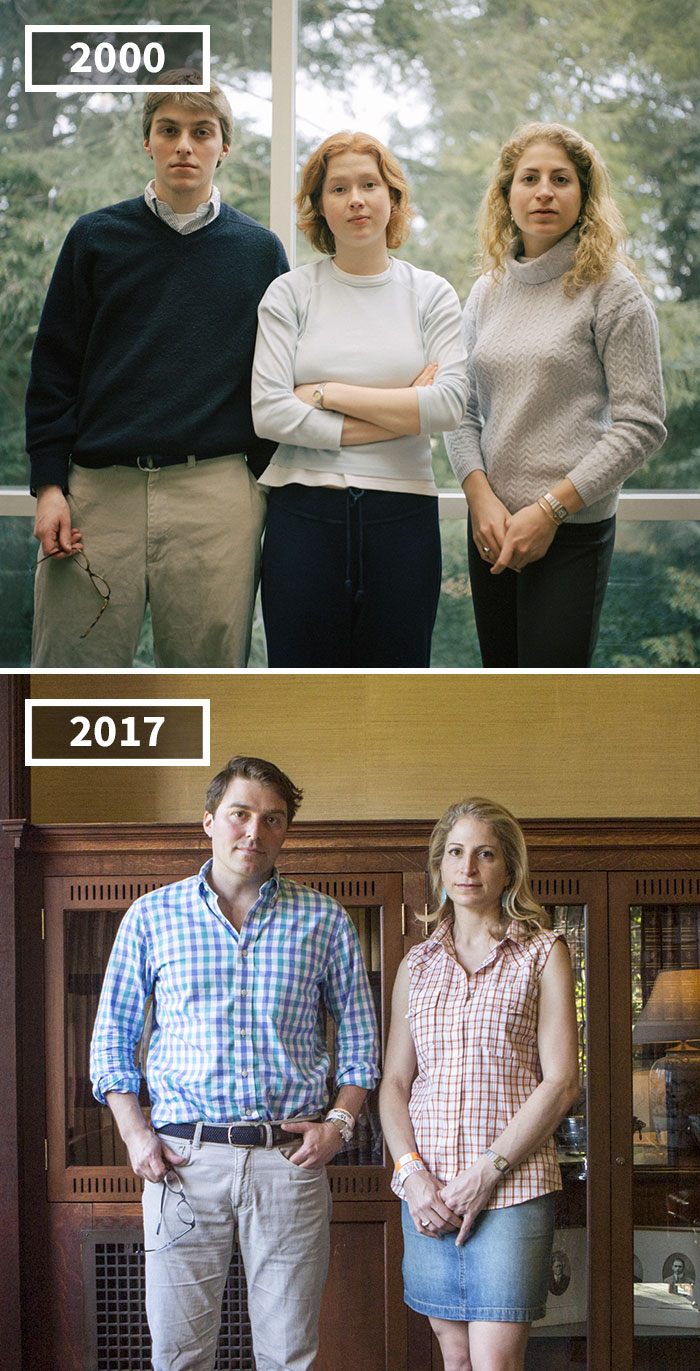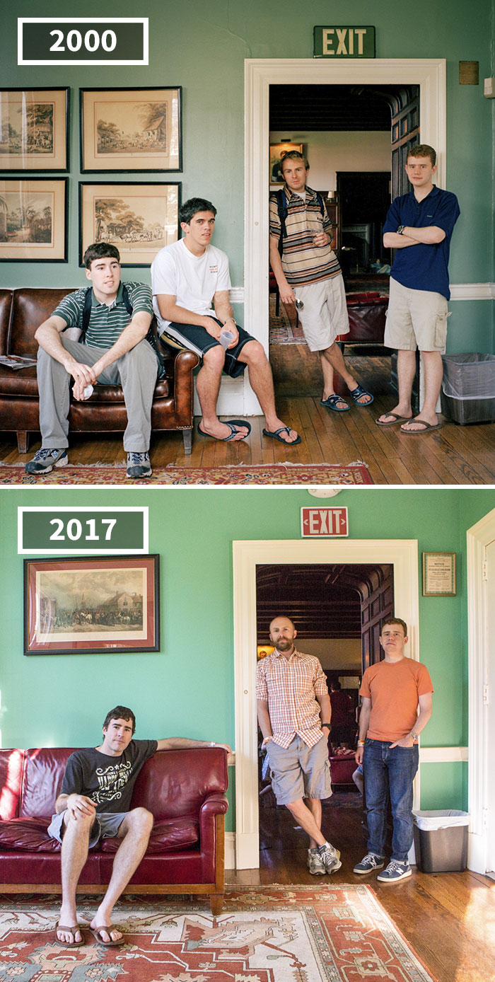 好像一眨眼間,幾年就過去了。我們以為自己沒變,其實時間早已經將我們變得面目全非。去年時,攝影師Josephine Sittenfeld準備參加大學同學聚會,她記起2000年,自己在普林斯頓大學上學期間,為同學們拍攝的照片。她決定找機會再給大家拍一張,展示17年來的變化。