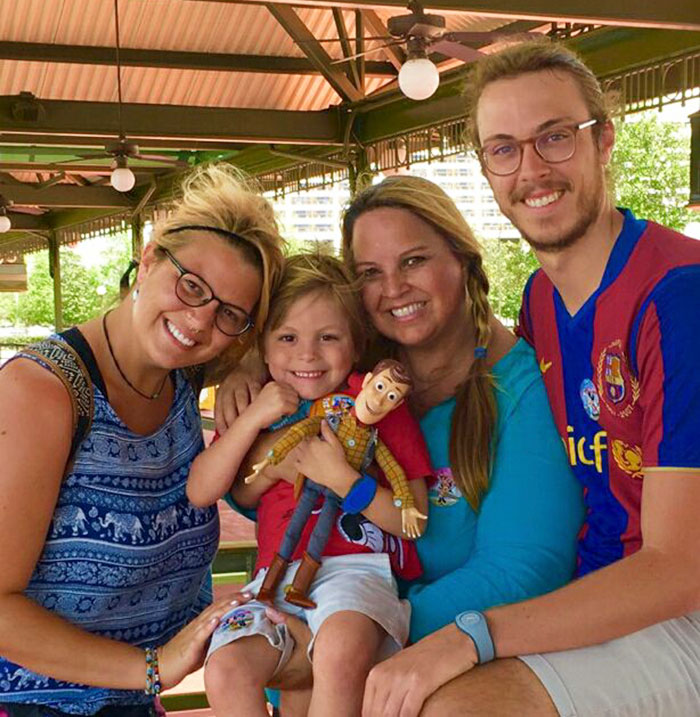 ▼43歲的媽媽(左)和雙胞胎女兒。