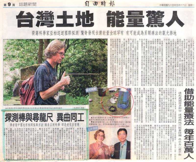 ▼專門探尋地穴能量的國際專家,荷蘭生物科學家亞柏(Jaap Van Etten)在經過測試之後發現,台灣這個寶島所蘊含的能量可能比起世界著名的美國能量城市亞利桑那州的瑟多那市(Sedona)還要來得高,非常有可能取代該地成為每年擁有百萬遊客前往體驗另類療法的國際觀光勝地!
