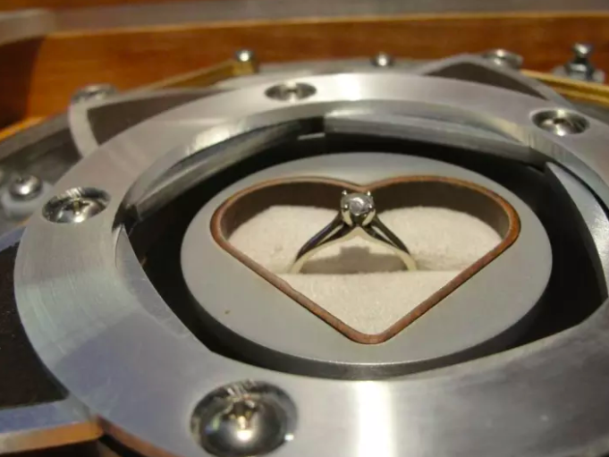 ▼他親手給女友做了一個「珠寶盒」,裡面放了一把鑰匙,將鑰匙插進鎖孔裡,求婚戒指就跳出來了!
