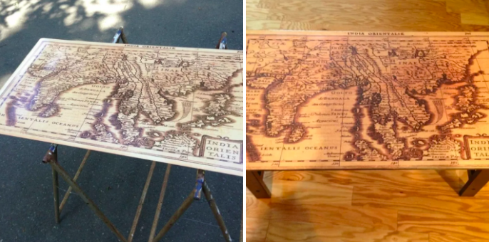 ▼泰國男友直接把地圖刻在桌子上,送給了女友。這是他親手刻的!